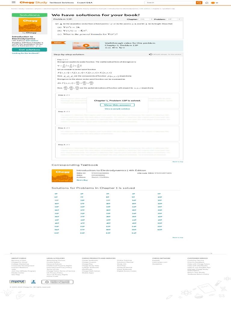 Solved Let Be The Separation Vector From A Fixed Point X Pdf Divergence Classical Electromagnetism