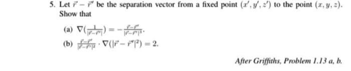 Solved Let Pi Be The Separation Vector From A Fixed Point Left X Prime Y Prime Z Prime Right To The Point X Y Z And Let Pi Be Its Length Show That A Nabla Left Pi 2 Right 2 Pi B Nabla 1